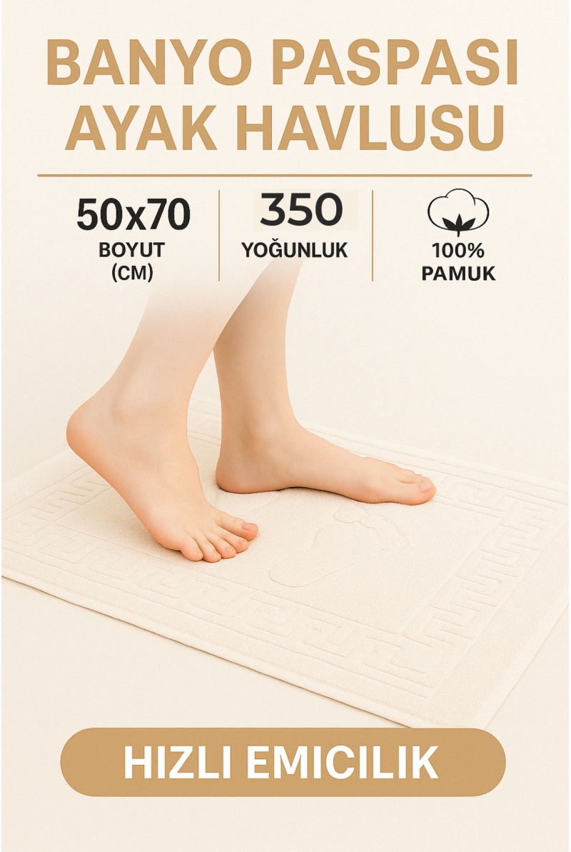 3 Adet %100 Pamuk En İyi Emici Ayak Havlusu : Konforlu Banyo Paspası 50x70cm Terra Krem