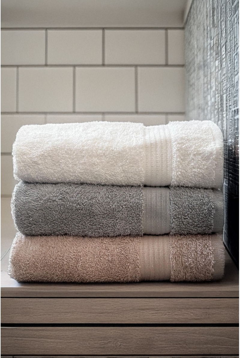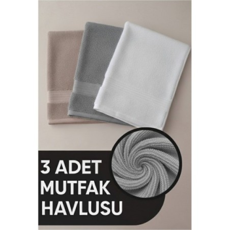 Elia 3 Adet %100 Pamuk En İyi Emici El ve Yüz Havlusu Mutfak Havlusu | Banyo 30x50cm Bej Gri Beyaz
