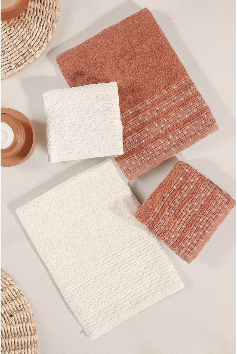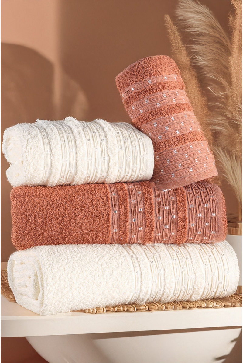 Pera 4'lü Banyo Havlu Seti Hamam Takımı 100% Pamuk
