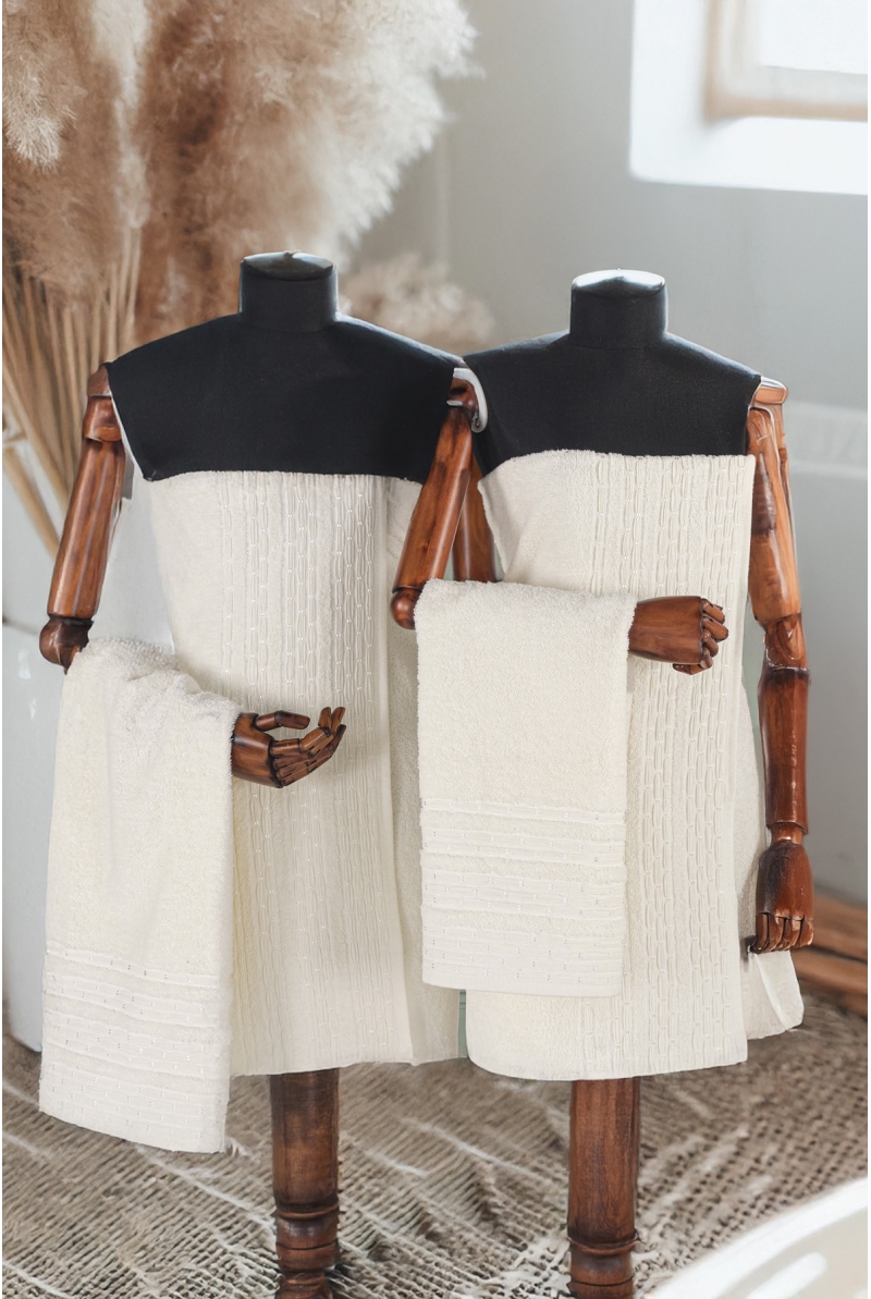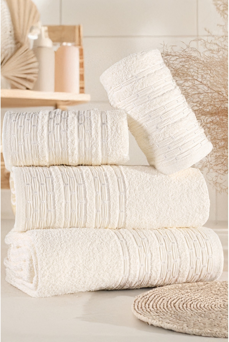 Pera 4'lü Banyo Havlu Seti Hamam Takımı 100% Pamuk